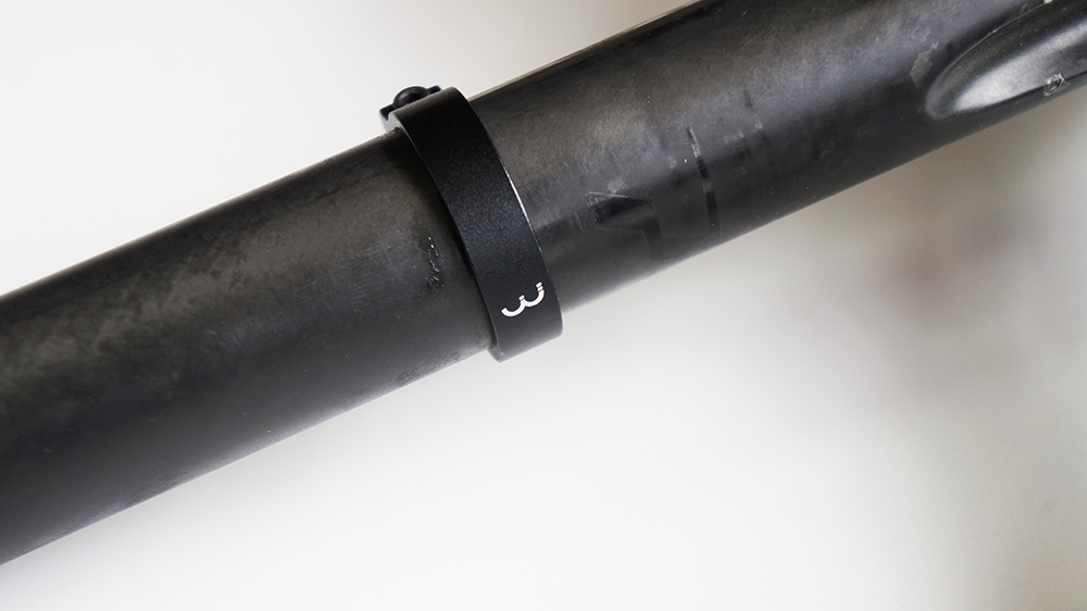 『シートポストの滑りを防止。高さ調整の目安にも』