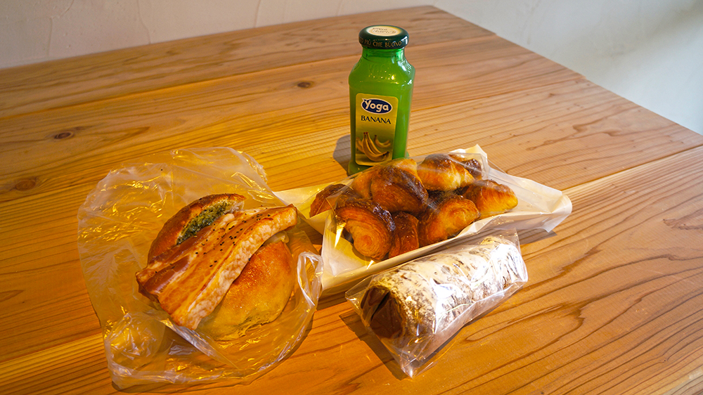店員さんにオススメを聞いて補給用の『厚切りベーコンパン』と家族へ『チョココルネ』と『ミニクロワッサン』をチョイス。