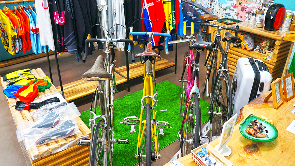 フレームや昔の自転車も並んでいました。見る人が見れば『おお!』ってなるんでしょう