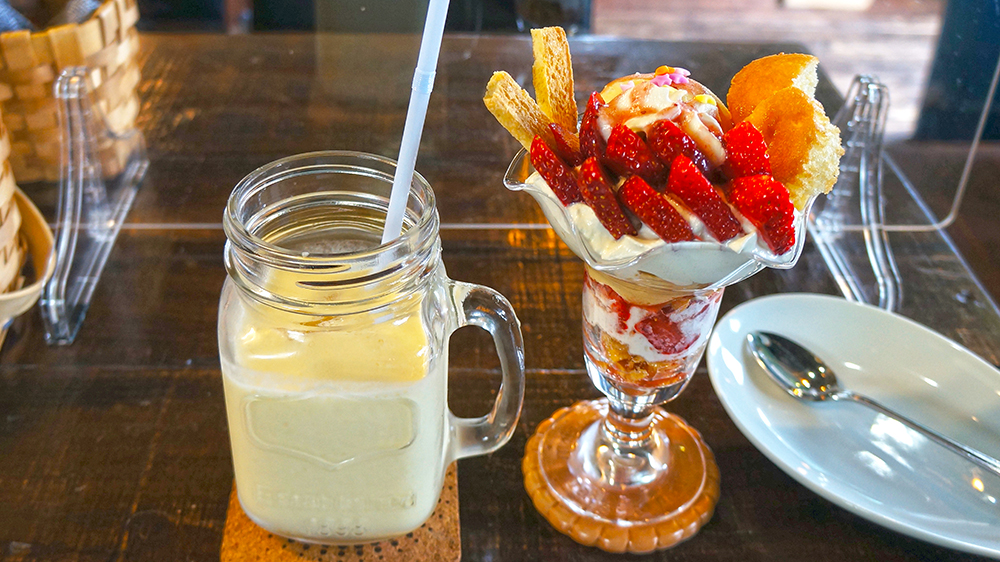今回は、いちごパフェとマンゴーラッシーをいただきました。