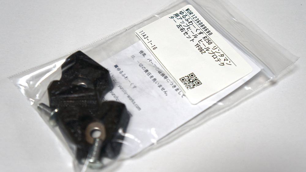 ワールドサイクルさんで『ゆるふわーくす R250リンタマン用アップヒールヒールプロテクター』を購入しました