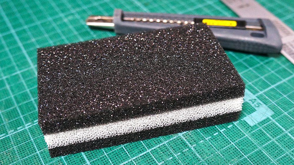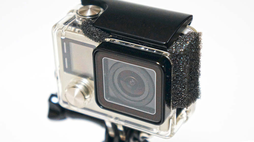 さらに風切り対策としてケースに両面テープを貼りスポンジを貼り付けています。
