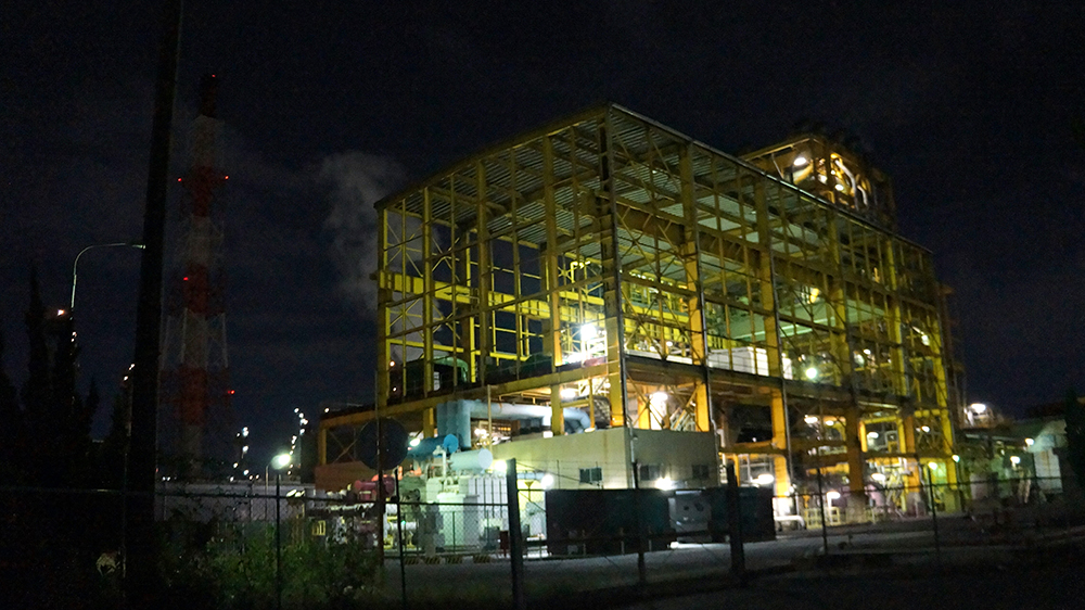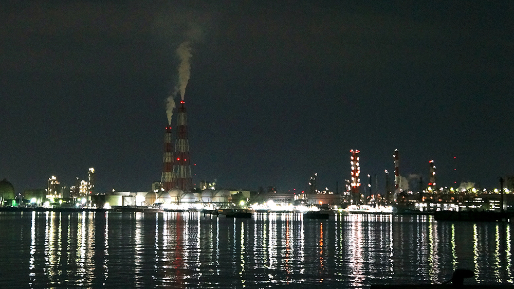 左右には工場があり、煙を立て光を放っています。見たかったのはこういう感じです。