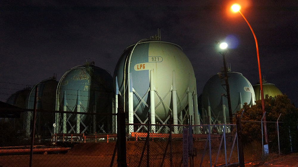 工場地帯に入ると車通りもなく、静か。走行中はロードノイズだけが聞こえてきます。